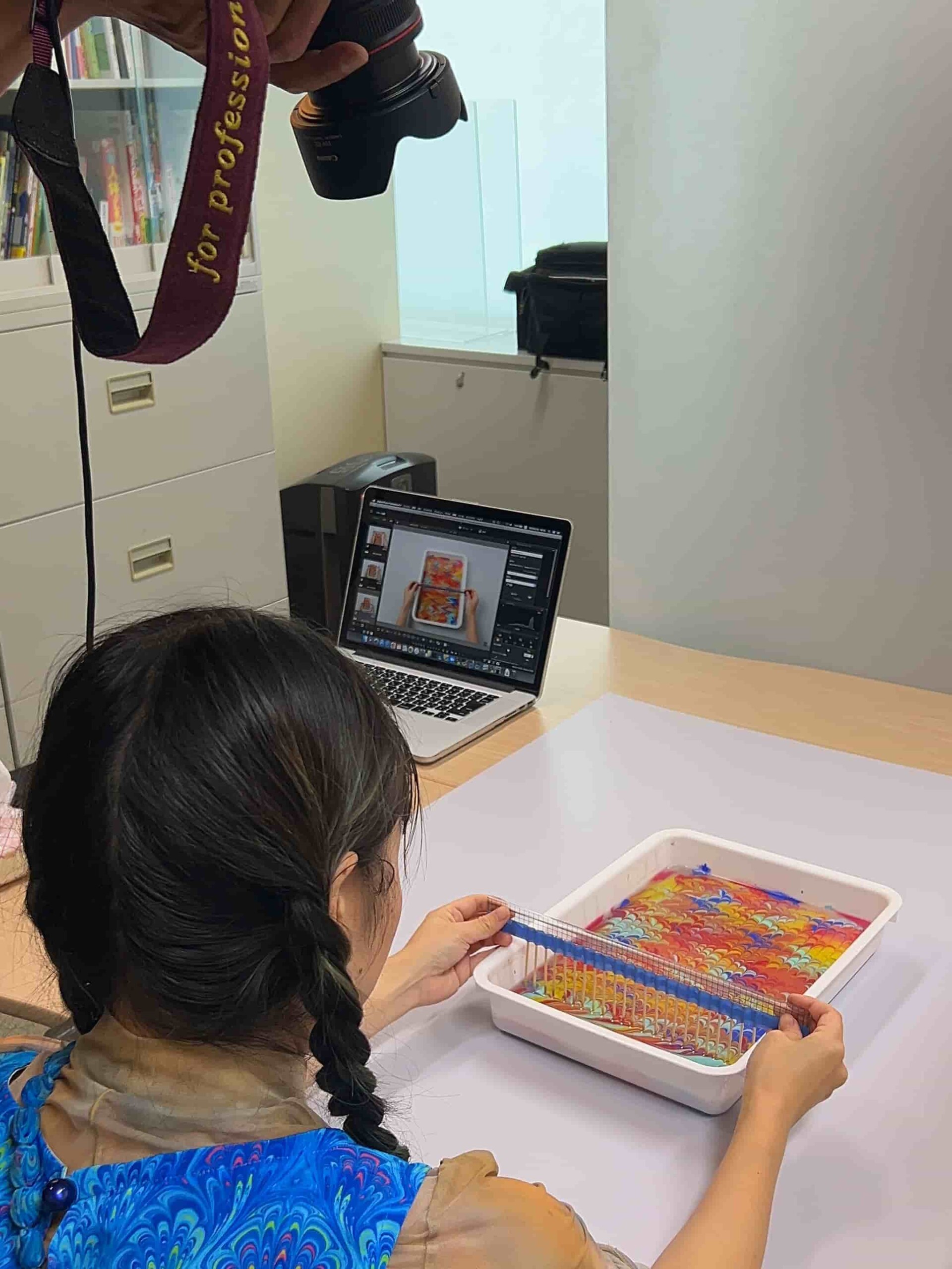 マーブリングを、もっと身近に、ご自宅で楽しく親しんでいただけるよう、材料や工程を工夫しました。